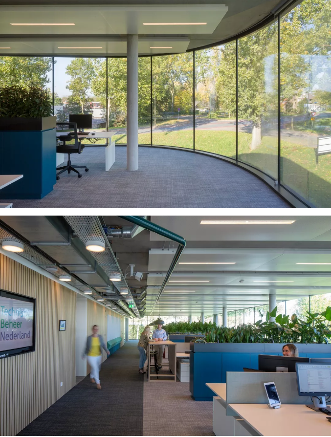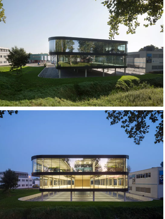 今天给大家介绍一座能源等级为A++++来自荷兰的曲面办公楼,我们一起欣赏吧该办公楼组织布局的核心在于通透感,这也是设计的重要着手点。