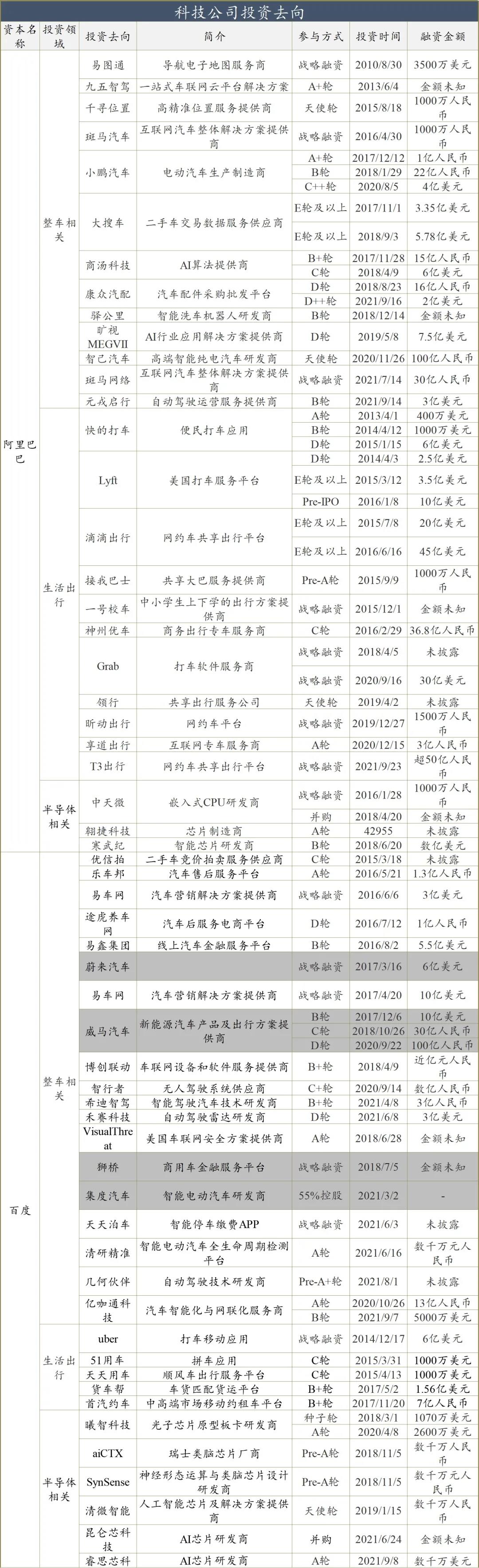 科技巨头投资去向1-阿里、百度
