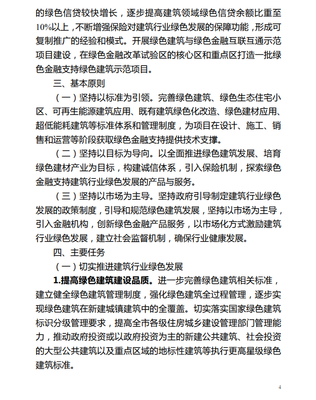 探索创新绿色金融支持建筑行业绿色发展的体制机制,保持建筑领域的绿色信贷较快增长,逐步提高建筑领域绿色信贷余额比重至10%以上,不断增强保险对建筑行业绿色发展的保障功能,形成可复制推广的经验和模式。