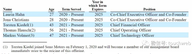 当前,Sono Motors有两个联席CEO,分别为Laurin Hahn、Jona Christians,均为90后。