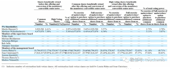 Laurin Hahn持有40.71%的投票权,Jona Christians有36.64%的投票权。
