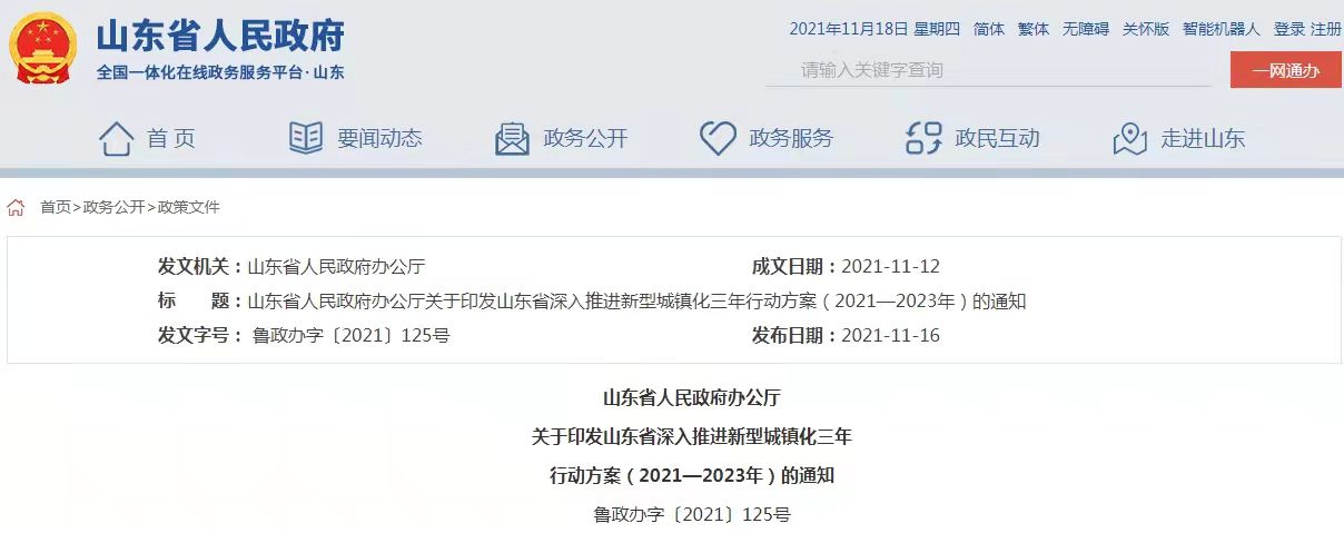 山东省人民政府办公厅2021年11月12日印发