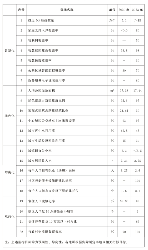 新型城镇化主要指示