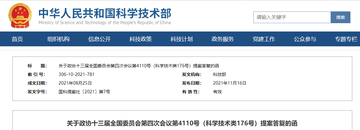关于政协十三届全国委员会第四次会议第4110号(科学技术类176号)提案答复的函