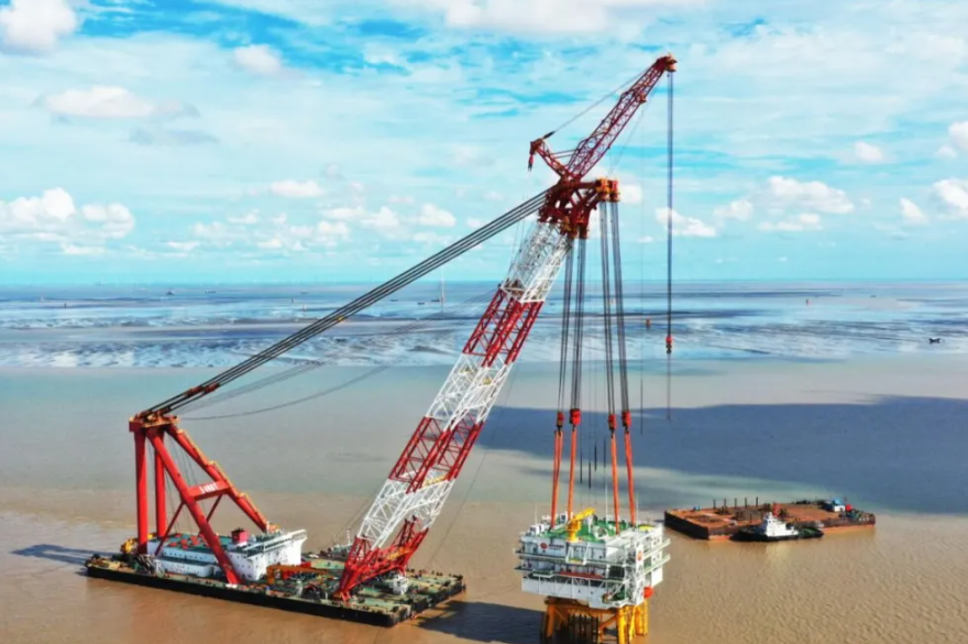 此次并网的东台五期项目离岸距离约37公里,所在海域具有典型的辐射沙洲地形特征,海床泥面标高较高,水深极浅,数台风机机位地处高滩位,是国内少有的具有离岸型潮间带特点的海上风电场,也是现阶段国内综合施工难度最大的海上风电项目之一。