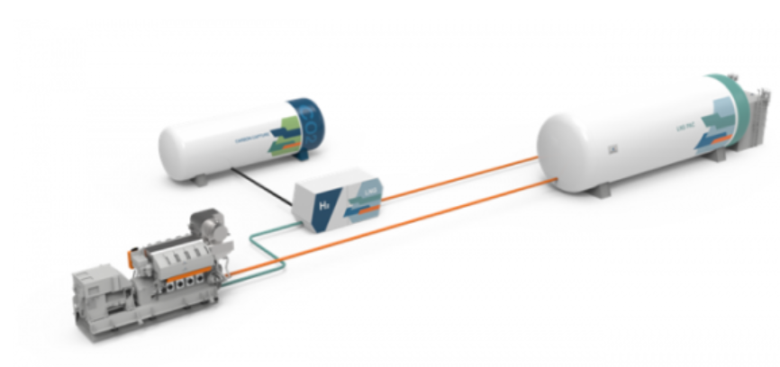 “我们的燃气发动机已经能够使用氢和液化天然气的混合物,我们未来的努力将是达到100%的氢燃料。”