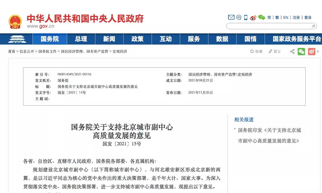 近日,国务院印发《关于支持北京城市副中心高质量发展的意见》,就进一步支持城市副中心高质量发展给出意见。《意见》提出,健全生态环境综合治理体系。坚持将绿色发展理念融入经济社会发展全过程,推进城市生态修复和功能完善工程。