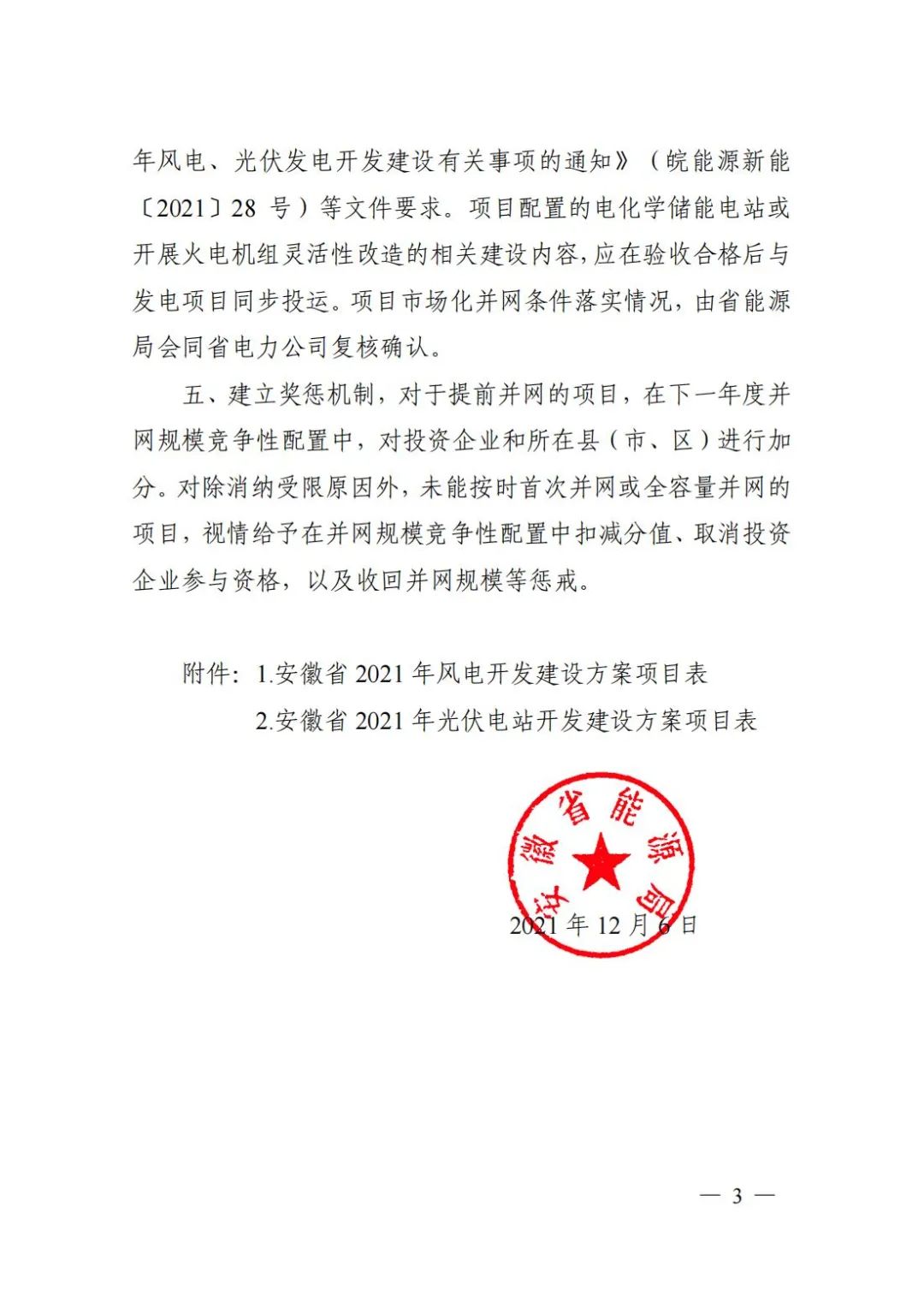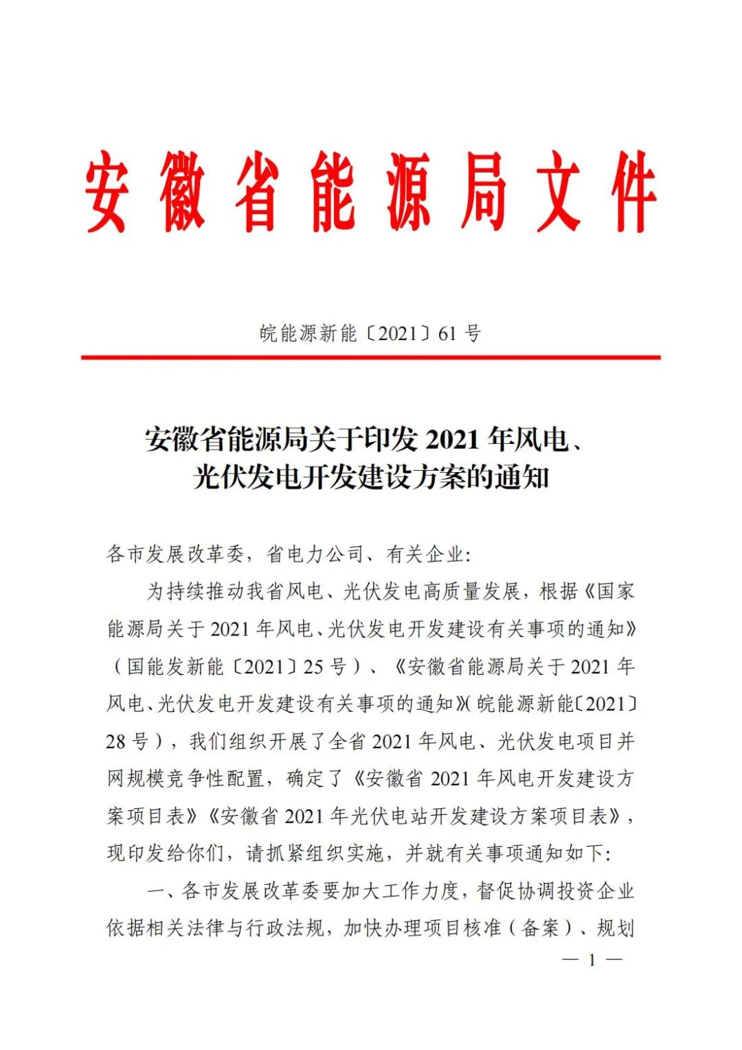 安徽省能源局印发《2021年风电、光伏发电开发建设方案》。其中提出: