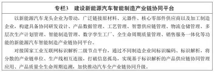 完善智能车间、智能工厂建设的激励与支持措施,推进智能化技术在新能源汽车研发设计、生产制造、仓储物流、经营管理、售后服务等环节的应用,推动设备数字化、互联化升级。加快建设自动化、网络化、信息化、智能化的高水平制造车间,逐步实现生产方式、装备、管理、服务等智能化升级,建设并推广汽车企业供应链数字化协同系统。着力发展具有自主知识产权的智能制造装备,实现关键核心工艺和技术的重大突破。大力推进新能源汽车制造过程绿色化改造,加快节能减排先进技术的产业化应用,构建新能源汽车绿色制造体系。