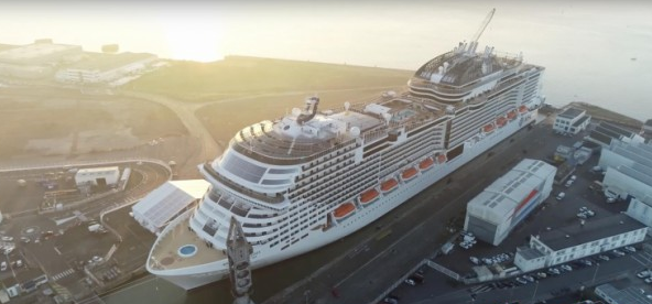 大西洋船厂正在建造的“MSC世界欧罗巴号”(MSC World Europa)是一艘拥有最先进技术的新型邮轮,将配备150千瓦的布鲁姆燃料电池(Bloom fuel cells)。布鲁姆将通过液化天然气(LNG)为船舶提供辅助动力,液化天然气是目前最清洁的海洋燃料之一。