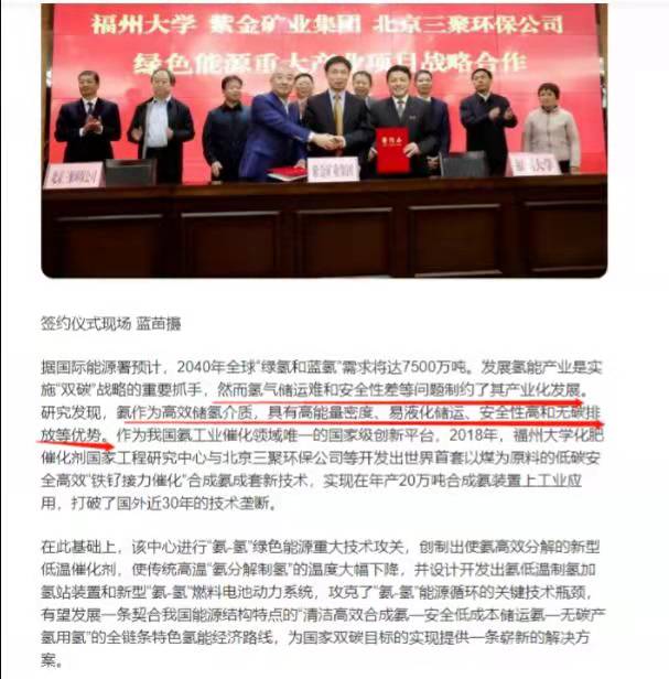 12月10日,国内首家“氨-氢”绿色能源产业创新平台在闽启建据国际能源署预计,2040年全球“绿氢和蓝氢”需求将达7500万吨。发展氢能产业是实施“双碳”战略的重要抓手,然而氢气储运难和安全性差等问题制约了其产业化发展。研究发现,氨作为高效储氢介质,具有高能量密度、易液化储运、安全性高和无碳排放等优势。
