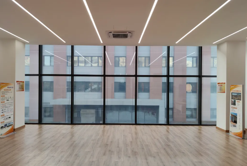 光电示范建筑安装光伏系统1500平米,装机容量235千瓦,日均发电量550kWh,年发电量20万kWh。项目在屋顶、立面和新建门厅采用龙焱不透光碲化镉光伏发电玻璃建材,充分利用了碲化镉光电建材在建筑立面发电能力强和色泽均匀的优点;另外二层展厅的玻璃幕墙用透光碲化镉发电玻璃对传统玻璃进行替代,既保证了与传统玻璃一样的采光效果,还有不错的发电能力和隔热保温效果。
