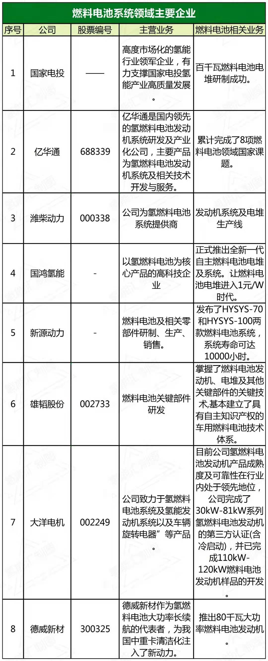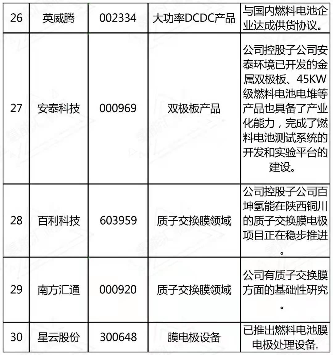 燃料电池领域,涉及的面非常广,因此该领域的企业数量也比较多,膜材料、双极板、电池系统、催化剂等,都有企业深入布局。
