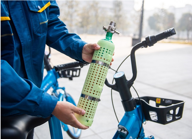 目前在常州投放的氢能自行车,储氢0.5立方米可续航70公里,最高时速23公里。市民使用价格是2元/20分钟。