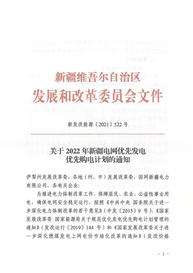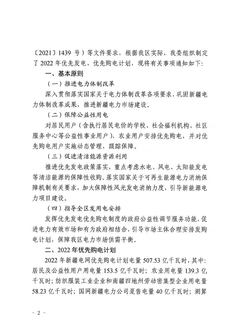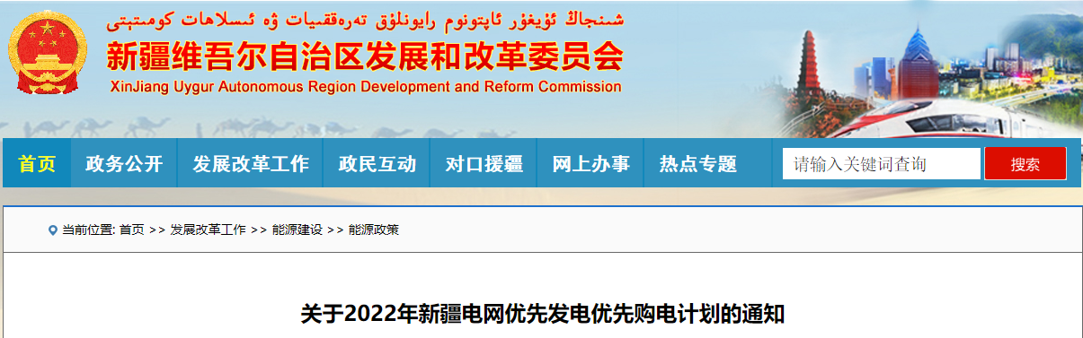 日前,新疆发改委印发2022年新疆电网优先发电优先购电计划,计划提出的风电、太阳能发电、水电、生物质发电等明年重点任务,太阳能发电机组安排优先发电56.71亿千瓦时。
