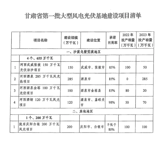 日前,光伏們了解到,各省已收到国家能源局、国家发改委印发的《第一批以沙漠、戈壁、荒漠地区为重点的大型风电、光伏基地建设项目清单的通知》,涉及19省份,规模总计97.05GW。