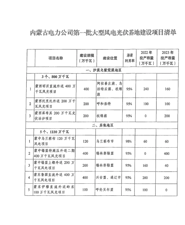 97.05GW!第一批大型风、光大基地项目规模大盘点