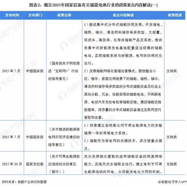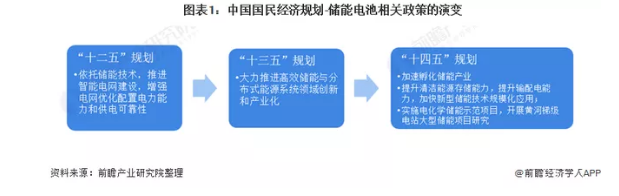 储能电池的相关概念在《中华人民共和国国民经济和社会发展第十二个五年规划纲要》中开始被提及,纲要明确:依托储能技术,推进智能电网建设,增强电网优化配置电力能力和供电可靠性;而在《中华人民共和国国民经济和社会发展第十三个五年规划纲要》中进一步明确为大力推进高效储能与分布式能源系统领域创新和产业化。此外,在《“十四五”规划和2035远景目标纲要》中,则在储能产业、储能能力、储能项目方面都做出了要求。