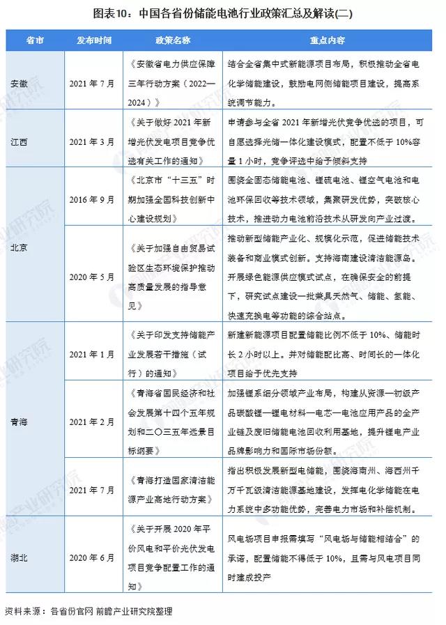 从储能电池的地方层面来看,2020-2021年,我国已有不少省份出台了新能源配储相关发展目标,规划年限在3-10年间。
