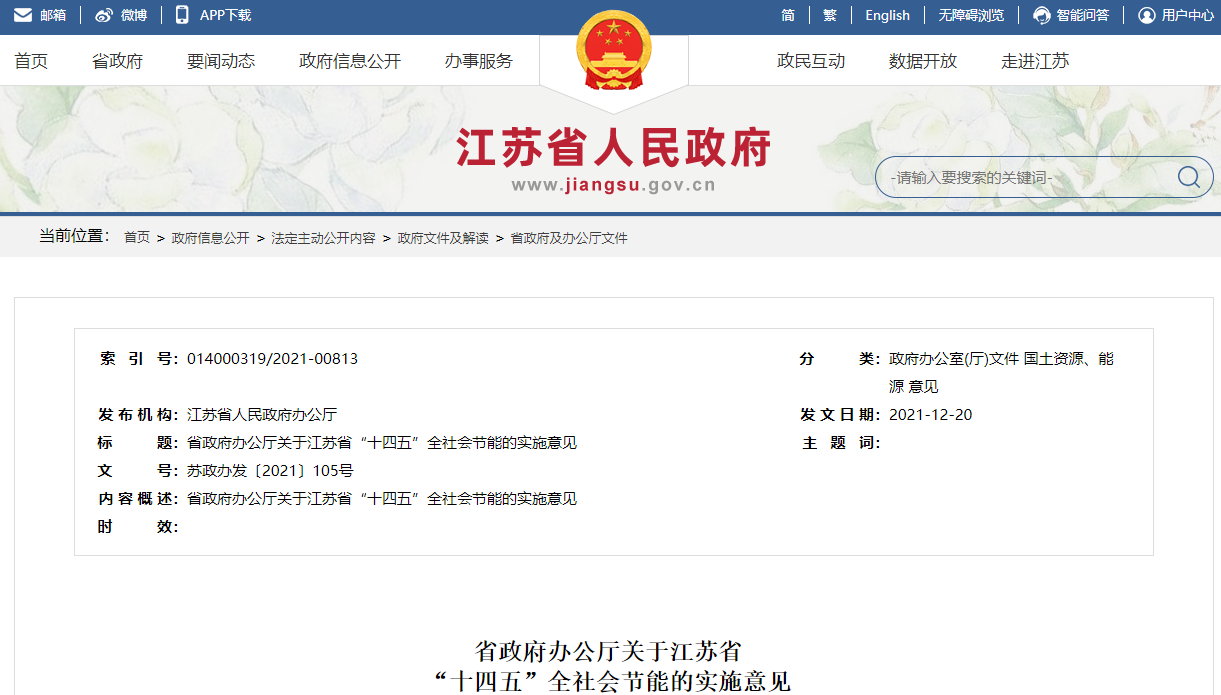 日前,江苏省政府办公厅发布了《关于江苏省“十四五”全社会节能的实施意见》。其中,《意见》指出优化建筑用能结构。大力发展光伏瓦、光伏幕墙等建材型光伏技术在城镇建筑中的一体化应用,探索“光储直柔”项目示范,推动分布式太阳能光伏建筑应用。到2025年,城镇建筑可再生能源替代常规能源比例达到8%。