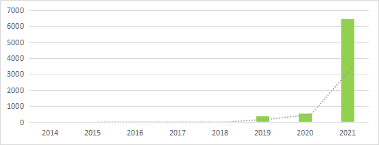 可再生能源制氢规模正不断增加。不完全统计,截止目前,公布的可再生能源制氢项目制氢规模已超7.45GW,2021年新增项目规模同比增长约1064%,其中单个项目制氢规模从最大110MW扩大到2021年的最大600MW以上。