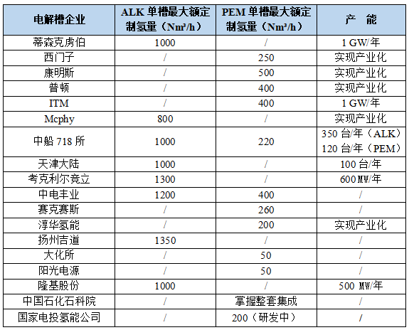 国内外电解槽主要企业及国内新进入企业情况