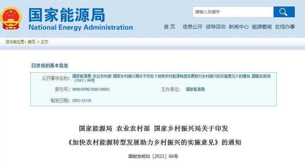 国家能源局 农业农村部 国家乡村振兴局