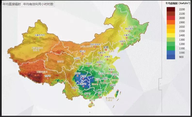 水平面年均辐照度约1307kWh/㎡