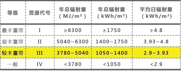 太阳能资源丰富程度等级