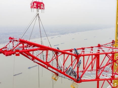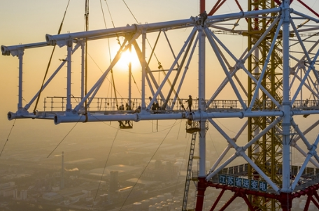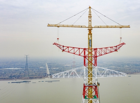 1月12日,高385米的现今世界最高输电铁塔在江苏顺利封顶。