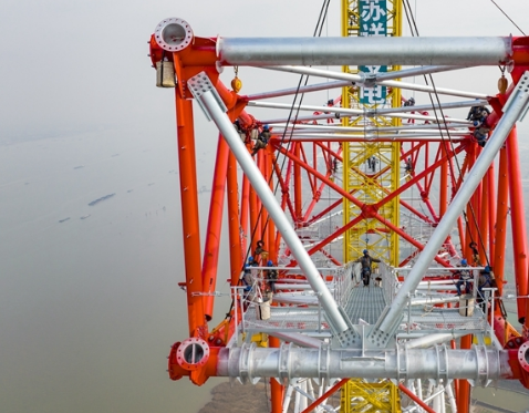 “此次铁塔封顶后,我们还将开展金具附件安装、跨江放线等施工,预计2022年6月工程竣工建成。”陈松涛说。