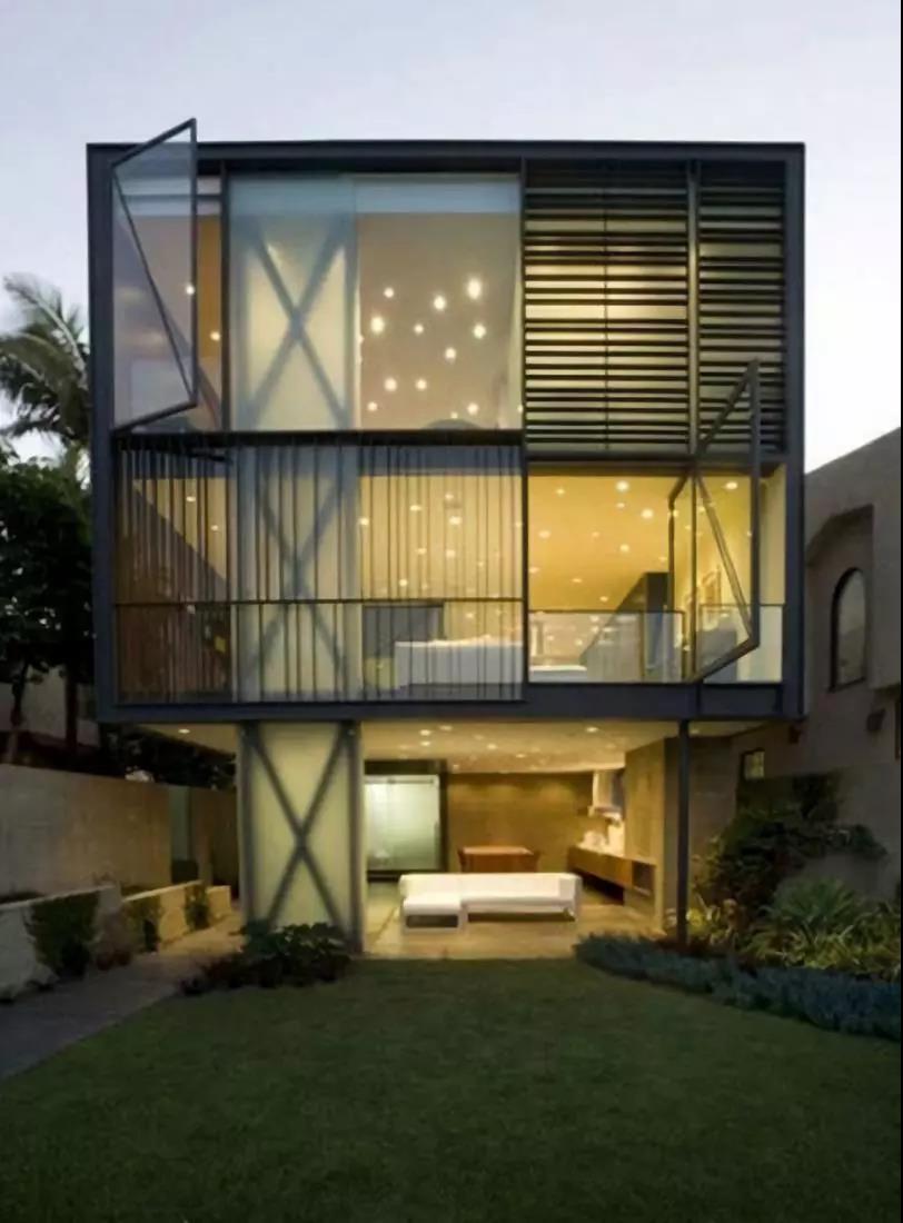 出自于伊朗建筑师格伦的作品,位于加州洛杉矶威尼斯运河。挑战的项目是为了户外空间最大化,创造一个似乎倒着盘悬在地面上的建筑。