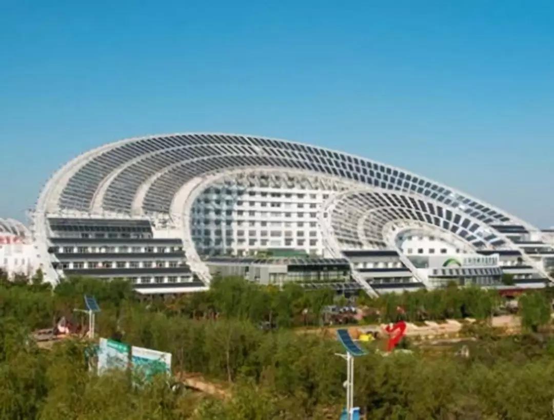 它号称世界上最大的太阳能建筑,大厦总建筑面积达到7.5万平方米,在全球首创实现了太阳能热水供应、采暖、制冷、光伏并网发电等技术与建筑的完美结合,建筑整体节能效率达88%,每年可节约标准煤2640吨、节电660万度,减少污染物排放8672.4吨,是全球首创性地实现了太阳能热水供应、采暖、制冷、光伏并网发电等技术与建筑的完美结合。