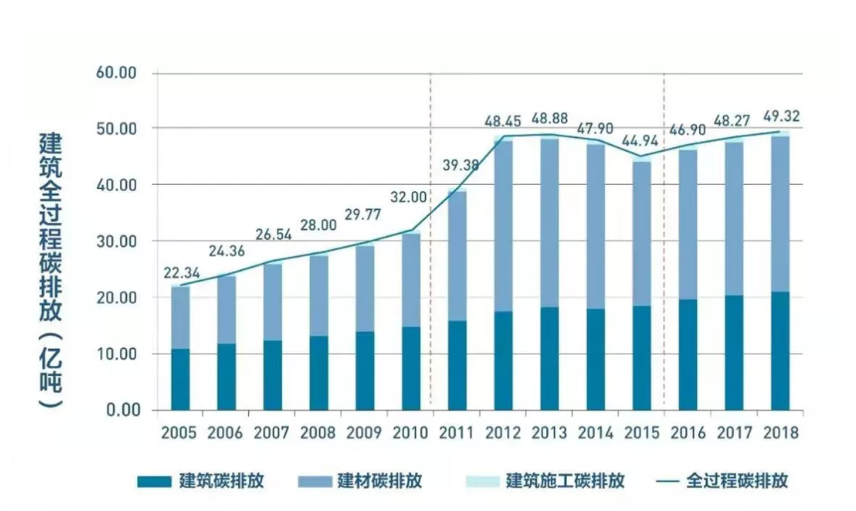 世界上现在有52%的人口居住在城市,而绝大部分的建筑都是新建筑革命时代之后建造的。新建筑革命所带来的这种遗产,使得建筑结构简洁,且更加注重功能,虽满足了人民的基本居住需要,但却丝毫没有怜悯地球会因此受到哪些负面影响。根据国际能源署提供的数据,建筑全生命周期产生的碳排放无论怎么算都占到碳排放总量的40%以上,即人类活动所造成的温室气体排放量中,建筑行业占到其中的40%,而这个比例在我国则达到了50%。