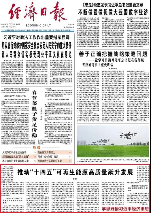 1月16日,国家能源局党组书记、局长章建华在《经济日报》发表署名文章《推动“十四五”可再生能源高质量跃升发展》。全文如下: