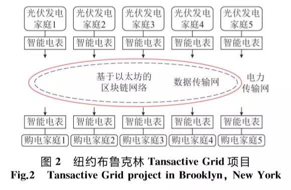 美国是全球能源区块链技术开发与应用实施活跃的国家之一,其较为先进的科技水平、较好的融资环境等条件均为能源区块链的技术研发与商业应用提供了较好的条件。 美国纽约布鲁克林社区的Tansactive Grid项目是世界上最早投入实践的能源区块链项目。该项目由美国新创能源公司 LO3与区块链技术研发商Consensys共同开发。该项目示意图如图2所示。