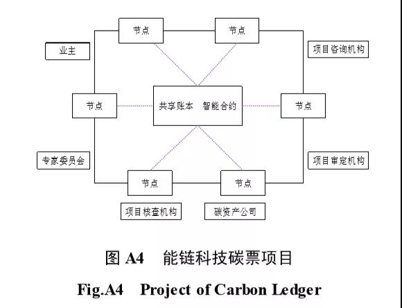 为了方便对碳资产管理,该项目研发了基于区块链技术的碳资产开发和管理平台。在该系统中, 业主、监管部门、碳交易部门和咨询机构等被视作单独节点。通过利用区块链技术所具有的共享账本特性和智能合约功能可以方便打通碳资产开发的完整 流程。例如:业主在购买碳资产减排量时,基于区块链的智能合约会将合约内容(交易价格、碳量等信息)发布出去,同时,所有节点都会对交易信息进行记录,之后通过验证校核该项交易。其整体示意图如附录 A图 A4所示。