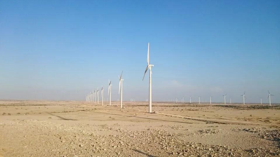 从卡拉奇港出发向东北方向行驶约200公里,在巴基斯坦信德省南部的茫茫戈壁滩上,一排排风电机组整齐矗立,叶片在风中徐徐转动。这里被称为巴基斯坦的“风廊”。据世界银行发布的研究报告,当地平均风速超过7米每秒,具备建设风力发电站的理想气候和地理条件。风电群项目之一的萨察尔风电站便坐落于此。