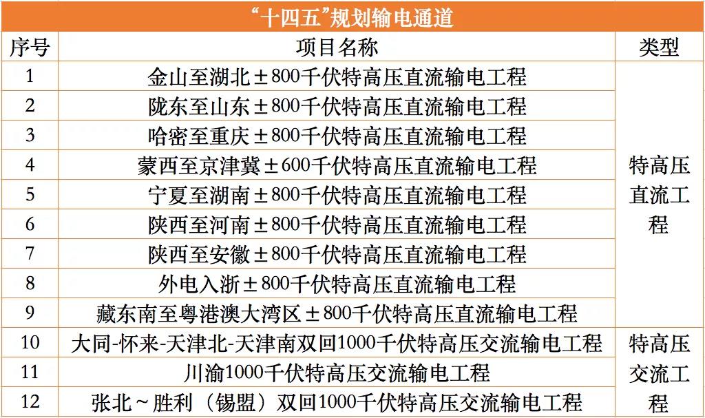 以下是本文件涉及的12条特高压输送通道:(纠正第4条为蒙西至京津冀±660千伏