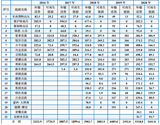 “十三五”特高压线路输送电量情况(来源:NWE西勘院规划研究中心)