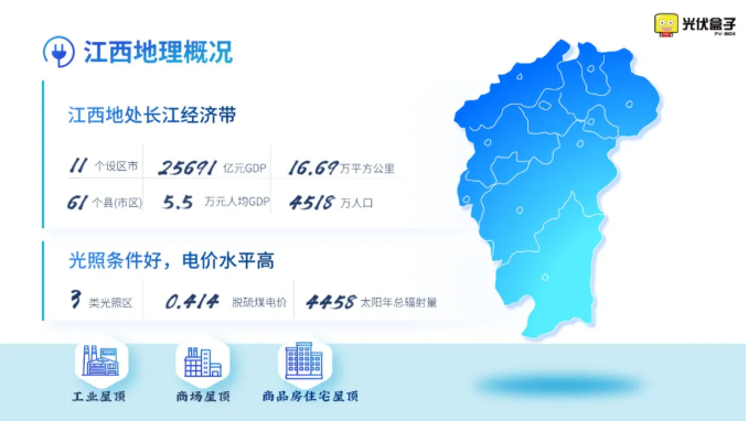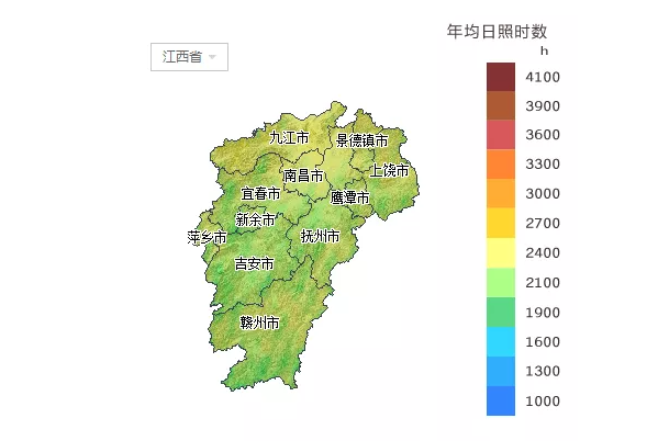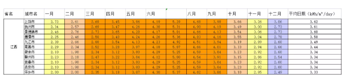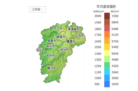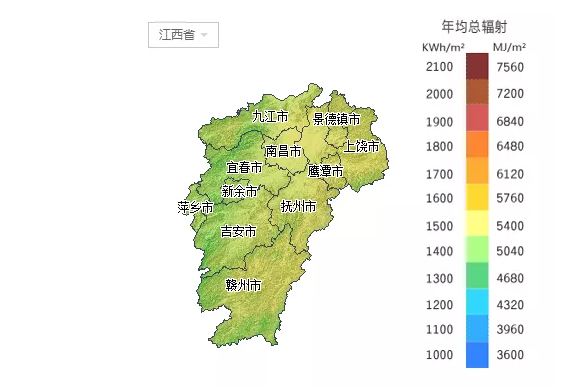 江西省位于三类光照资源区,江西省平均日照在3.33-3.62(kWh/m²/day)之间。