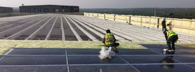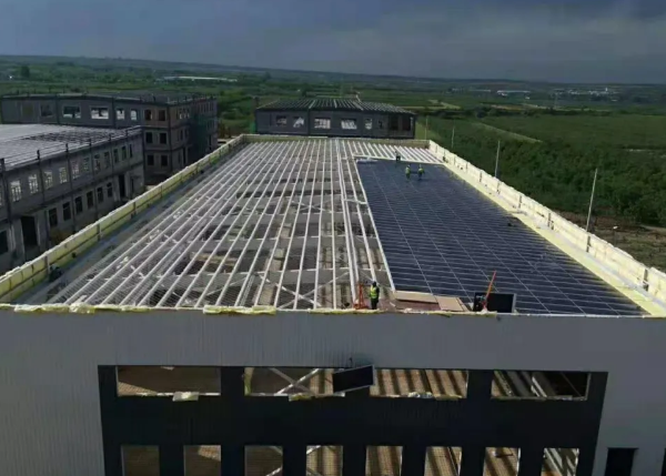 业主的钢结构厂房建设到屋顶的檩条和保温棉完成铺设的阶段,保温棉以上部分建设具备建筑功能的BIPV方案。