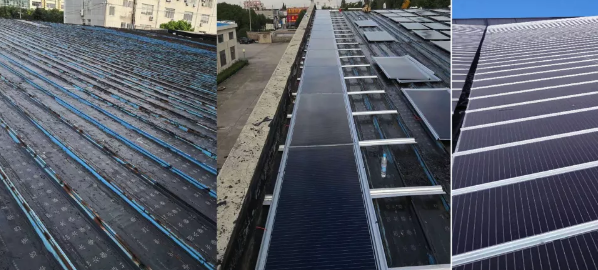 当然也可以选择直接铺设的方案。考虑到彩钢瓦的寿命、耐腐蚀情况、以及漏雨情况。最好选用铺设率可以达到百分之百的方案,否则在项目运营期将会给建筑和光伏系统带来巨大的风险。例如在彩钢瓦已经产生腐蚀的情况下,应用不能做到满铺的BIPV技术方案,那么裸露在空气中及阳光下的已经腐蚀的彩钢瓦将加速屋面漏雨的进程。将显著增加建筑后期运营的风险以及对光伏电站本身带来的运营风险。(如拆掉光伏组件进行彩钢瓦防水二次处理带来的运营费用显著增加。