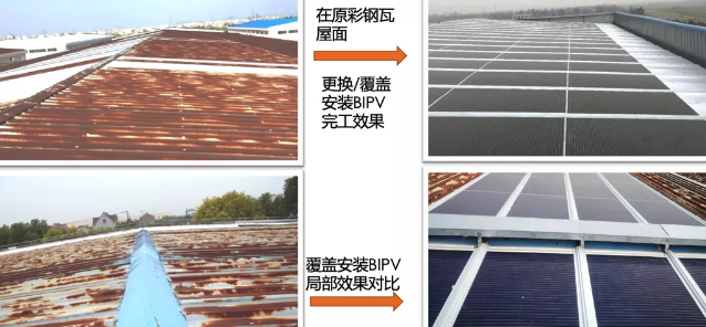 而新建的钢结构建筑、既有存在漏雨的钢结构建筑、开始腐蚀的彩钢大工业屋面利用BIPV的方案就成为业主和投资商的刚性需求了。从节约厂房项目静态投资,节省漏雨二次投资、最大化安装光伏瓦等方面BIPV就比BAPV的优势更加凸显出来了。