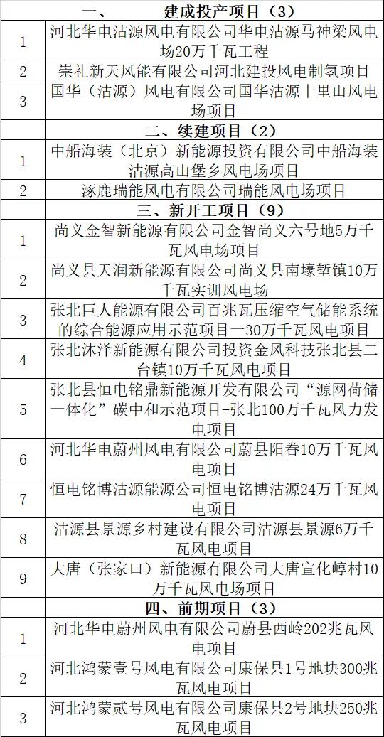 张家口2022年:重点推进17个风电项目,包含建成投产、续建等