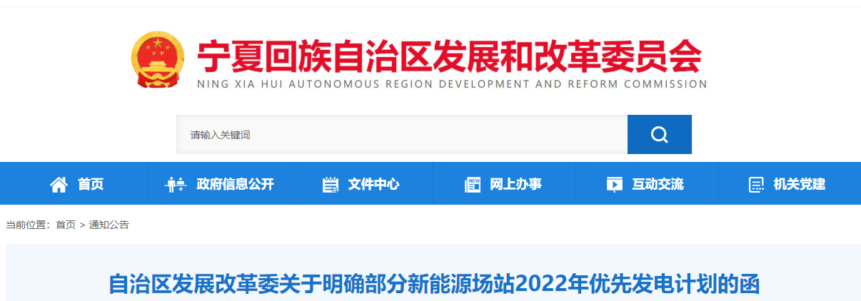 宁夏自治区发展改革委今日发布关于明确部分新能源场站2022年优先发电计划,具体原文如下: