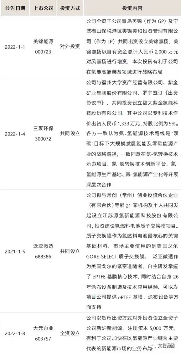 政策利好下,上市公司纷纷加码氢能业务。仅今年以来就有7家公司先后发布公告,通过合作、收购、新设子公司或投资基金等方式开展氢能领域的布局。
