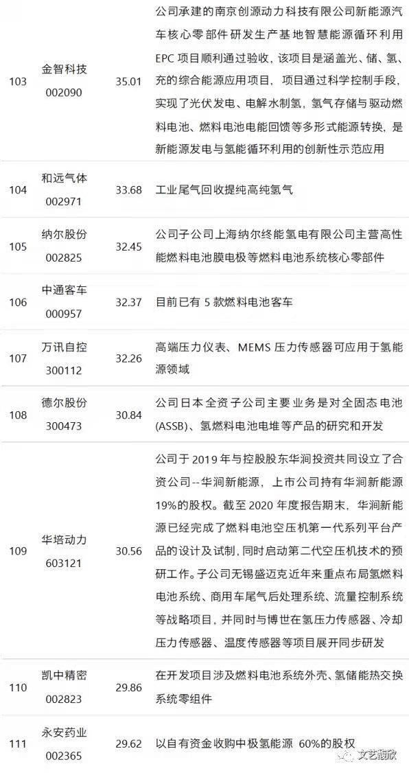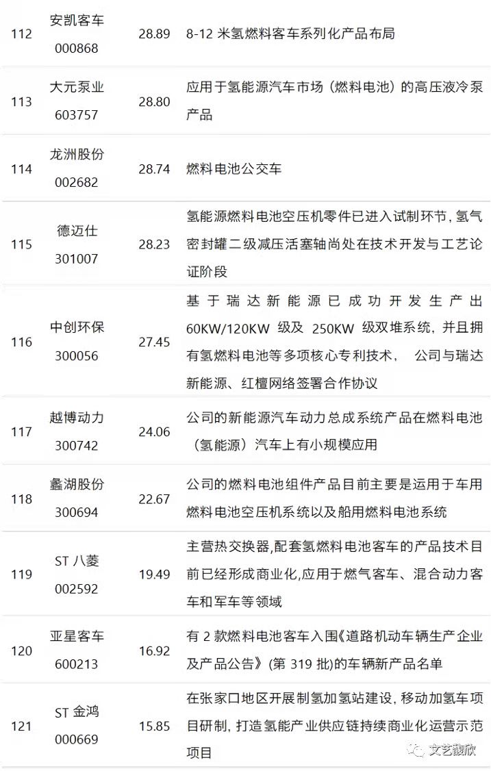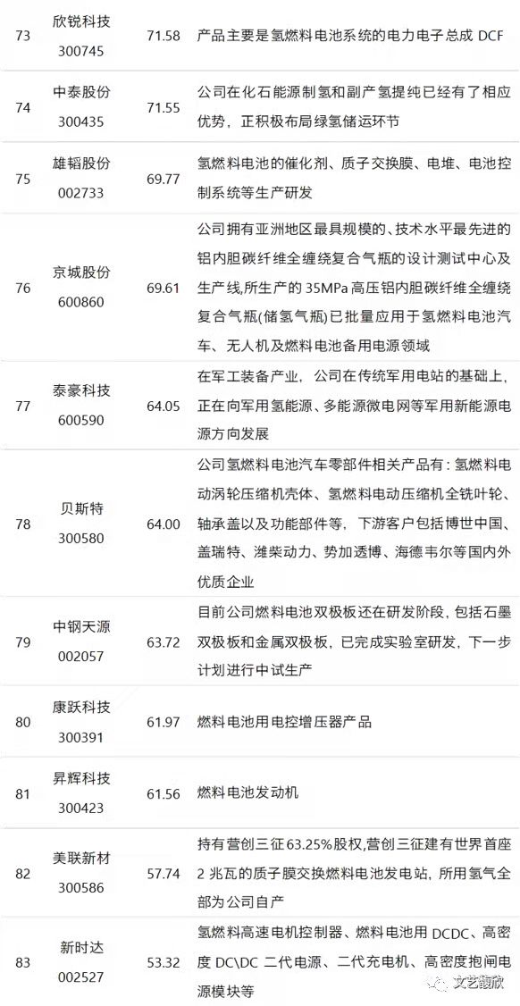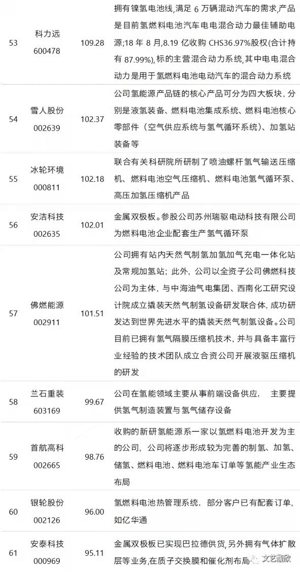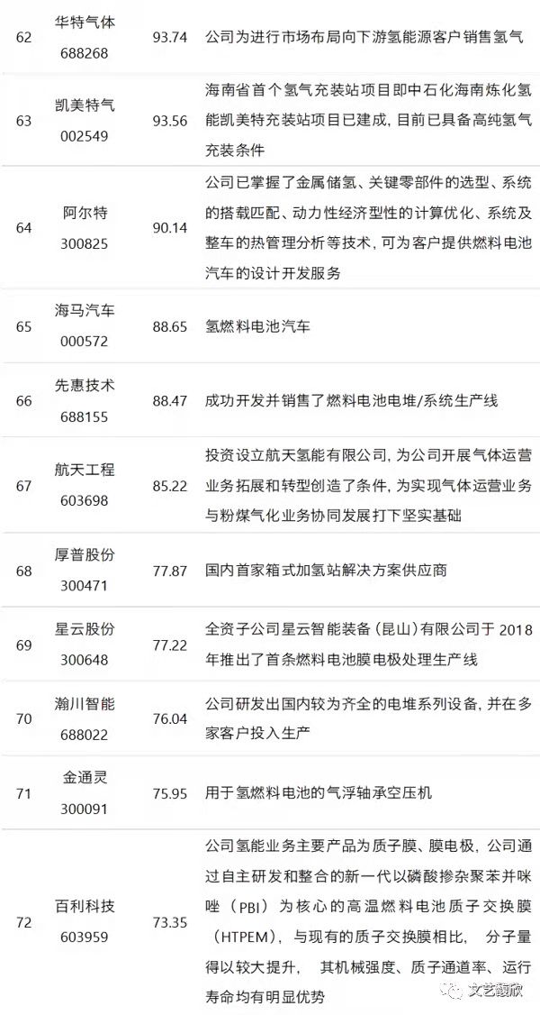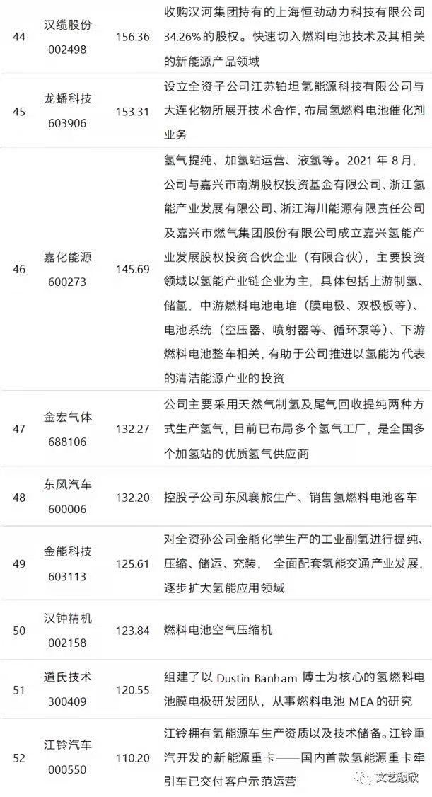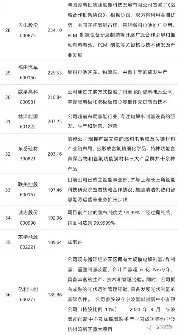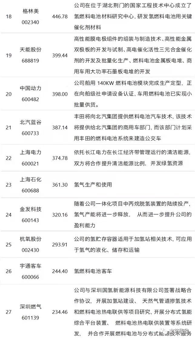 氢能产业链庞大,关键技术覆盖从氢气制取、储运到终端应用多个环节,其中燃料电池汽车优势显著,国内已率先在商用车领域开展应用,受益低碳政策下燃料电池汽车逐步导入,燃料电池市场正在快速打开。由于细分领域众多,据统计已有上百家A股上市公司在氢能领域展开布局。