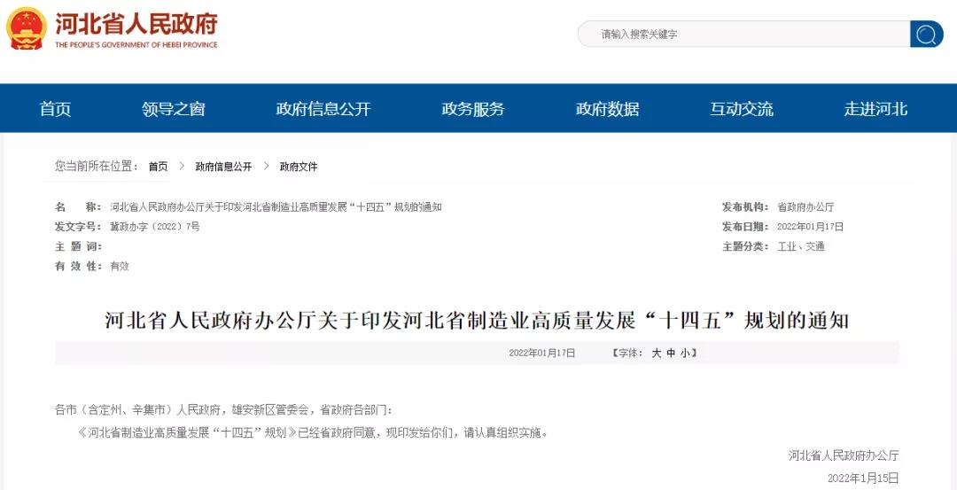 近日,河北省人民政府办公厅印发《河北省制造业高质量发展“十四五”规划》(简称《规划》,“规划”提出:坚持锻长板、补短板,巩固提升现有优势,持续推进传统优势产业转型升级,着力培育壮大战略性新兴产业,加速布局发展高潜产业、未来产业。保持制造业比重基本稳定,聚焦重点制造业链条,着力推进稳链、补链、强链,推动产业链变革、供应链重构、创新链重塑、价值链升级,努力构建高端化、智能化、绿色化特征突出的先进制造业体系,打造具有全球影响力的先进制造基地。