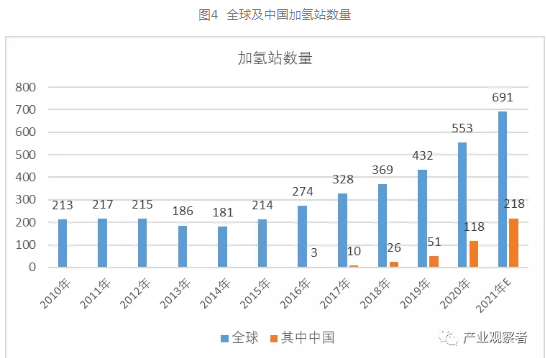 过去很长时间我们研究氢能都习惯性地研究燃料电池,如果2021年我们还是盯住这个产品的话,就会觉得这个行业没有太多的进步,2021年全国氢燃料电池汽车产销数据分别为1777辆和1586辆,同比增加48.2%和34.7%,但因为基数太低,这个销量显然引不起市场注意。